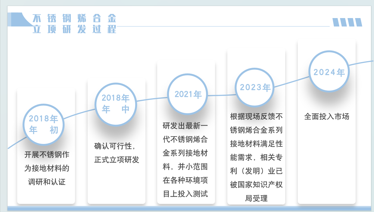 采用外層0.7mm不銹鋼(標(biāo)號根據(jù)使用環(huán)境選擇)經(jīng)過石墨烯專有配方處理后包覆高導(dǎo)性的合金材(合金材表層也經(jīng)過石墨烯專有配方的涂層處理)經(jīng)過激光焊、拉拔、退火再拉拔、再退火形成的一種導(dǎo)電性優(yōu)越、耐腐蝕能力強(qiáng)的一種新型接地材料。